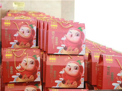 不一會,員工陸續(xù)抵達(dá)會場,有序地在外場禮品區(qū)簽字領(lǐng)取伴手禮盒,每個人臉上都洋溢著歡樂的笑容。