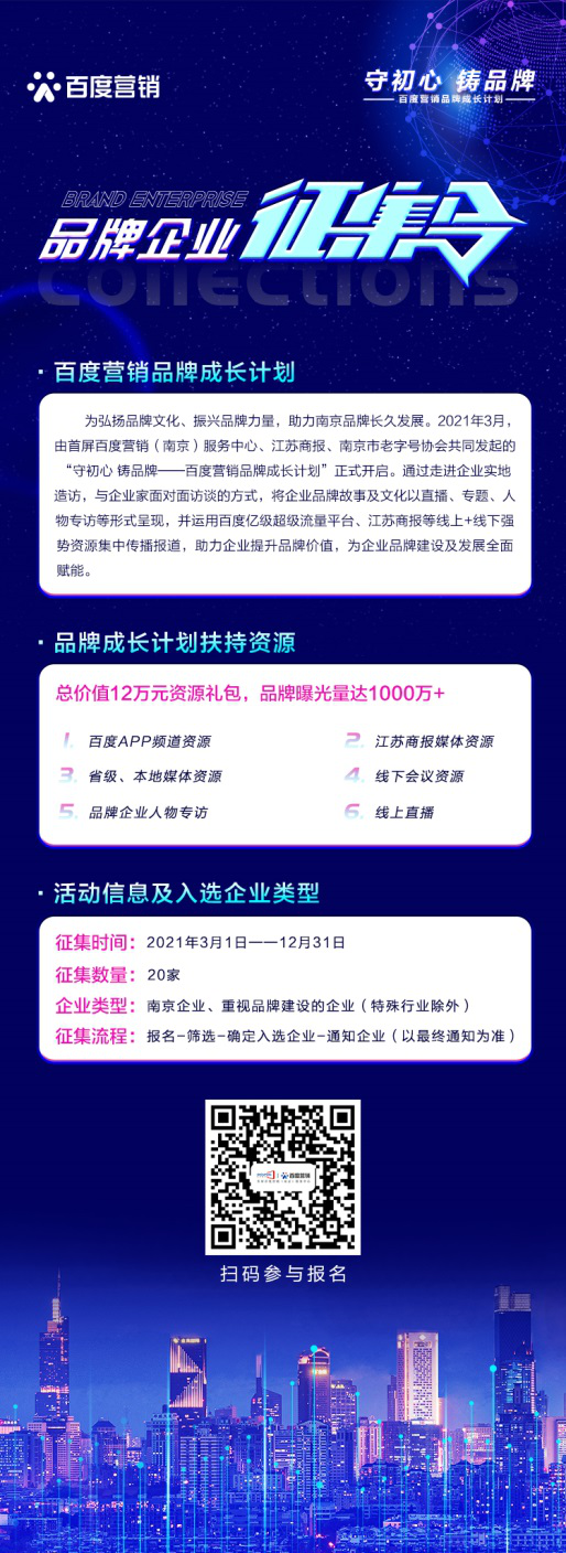 百度從傳統(tǒng)的網(wǎng)絡(luò)搜索引擎到移動互聯(lián)網(wǎng)時代的深度布局,正以技術(shù)推動創(chuàng)新,以AI人工智能深度賦能城市建設(shè)、產(chǎn)業(yè)升級以及品牌新競爭等價值升維。在智能經(jīng)濟發(fā)展的宏觀大環(huán)境下,百度將積極求新求變、加速升級迭代,用技術(shù)驅(qū)動商業(yè)增長,創(chuàng)新加速品牌成長,助力社會經(jīng)濟發(fā)展新勢頭?!鞍俣葼I銷品牌計劃”第二期正面向廣大品牌企業(yè)進(jìn)行征集,有興趣的品牌企業(yè)可掃描下方報名二維碼參與,期待有更多的品牌企業(yè)加入到活動中,展現(xiàn)品牌活力、書寫品牌榮耀。